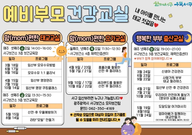 ![]() 광주광역시 서구, 예비부모 건강교실 본격 운영 |