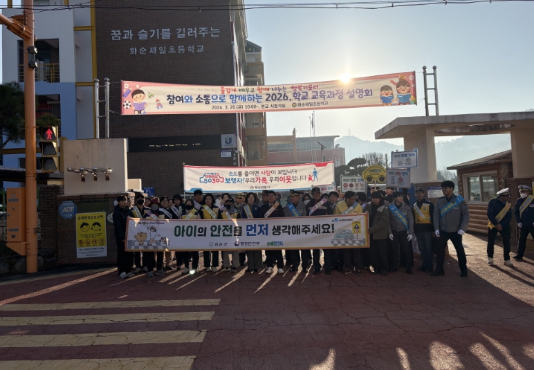 참석자들은 등교 시간대에 화순제일초등학교 일원에서 ▲교통안전 수칙 홍보 ▲운전자 대상 서행 및 정지선 준수 안내 ▲어린이 안전보행 지도 등 다양한 활동을 펼쳤다.