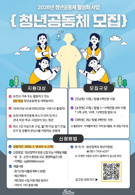 ![]() 2026년 청년공동체 활성화 사업 참여팀 모집 |