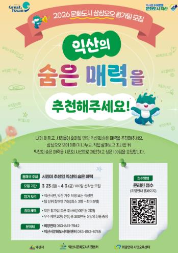 ![]() 익산시, 시민과 함께 도시의 숨은 매력 찾는다 |
