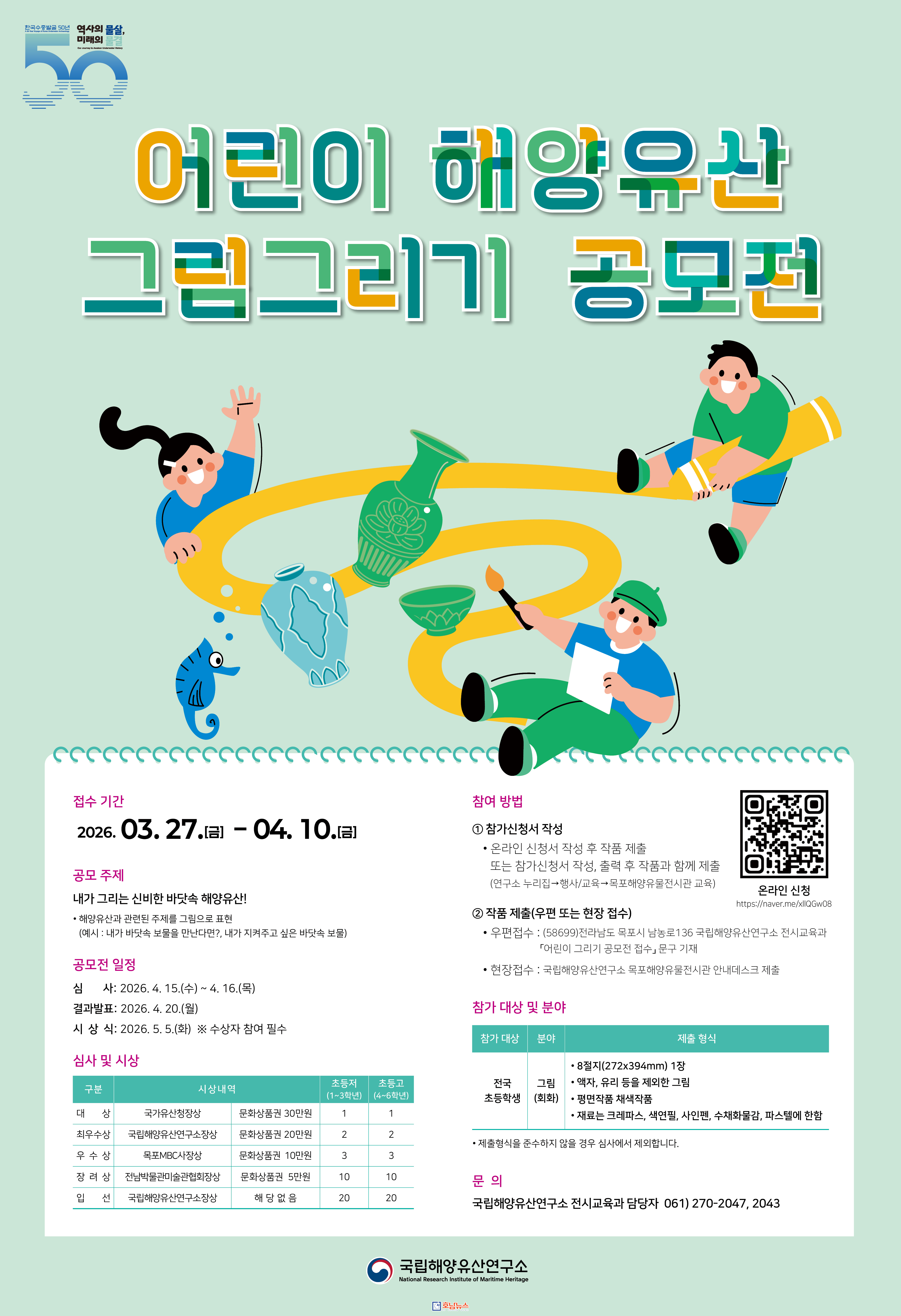 이번 공모전은 어린이들에게 해양유산의 의미를 자연스럽게 전달하는 동시에, 문화유산 보존의 가치를 다음 세대로 확장하는 계기가 될 것으로 기대된다.