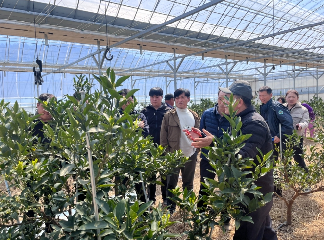 이번 교육은 지난 20일 농가 재배포장에서 만감류 재배 농가 25명을 대상으로 진행됐으며, 고품질 생산을 위한 봄철 핵심 관리기술 교육과 현장 맞춤형 컨설팅을 병행해 추진됐다.