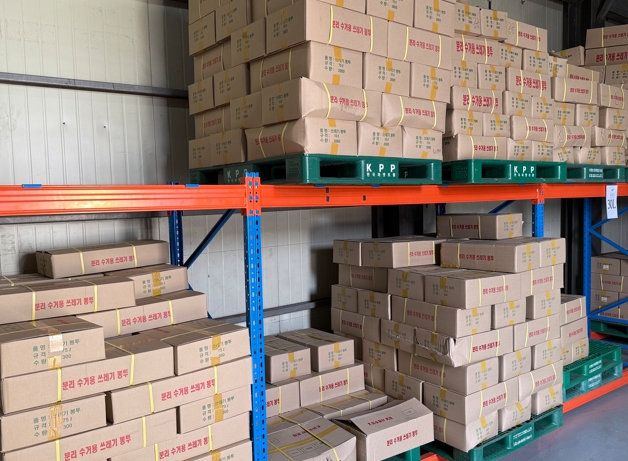 ![]() 나주시가 보관 중인 종량제봉투로 9월까지의 물량이 확보된 상태이다. |