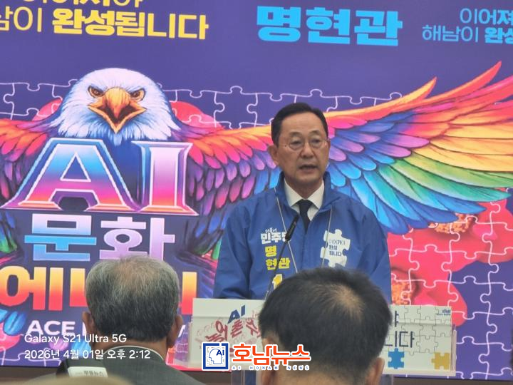 ![]() 명현관 해남군수 출마 기자회견 / 사진제공=AI호남뉴스 |