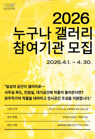 ![]() ‘2026 누구나 갤러리’ 참여기관 모집 |
