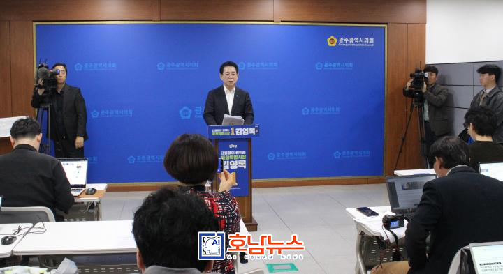 Kim held a press conference on the 6th at the Gwangju City Council briefing room, stating, “I will approach the runoff with a deep sense of responsibility, bearing in my heart the expectations and hopes for the integrated special city.”