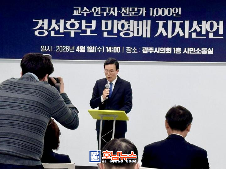 민 후보는 “전남·광주는 더 이상 변방이 아니라 대한민국 미래를 설계하는 중심이 되어야 한다”며 “성장·균형·기본·녹색·시민주권을 통해 320만 시민이 함께 만드는 새로운 국가 모델을 완성하겠다.”고 밝혔다.