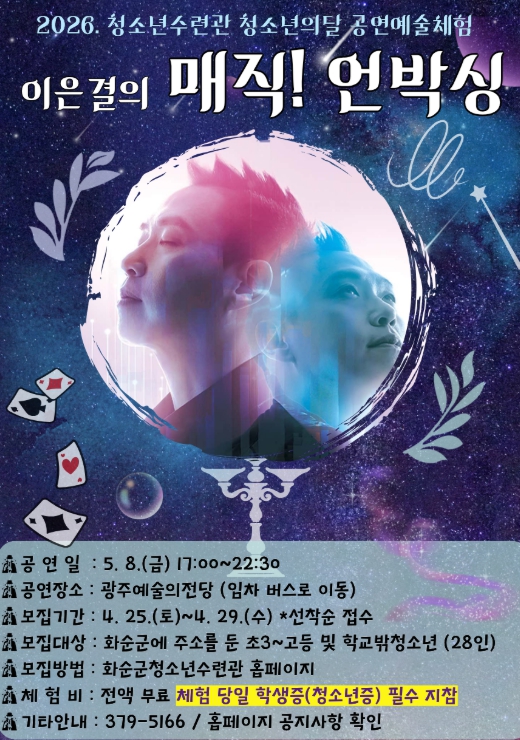 ![]() 청소년의 달 공연예술체험 ‘이은결의 매직! 언박싱’ 홍보 포스터 |