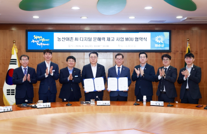 ![]() 화순군청 소회의실에서 진행된 농산어촌 AI 디지털 문해력 제고 사업 MOU 협약식 모습 |
