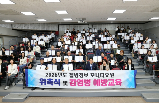 고흥군 농업기술센터 대강당에서 열린 이번 행사에서는 학교, 어린이집, 경로당, 요양시설 관계자와 공무원 등 153명을 질병정보 모니터 요원으로 선정했으며, 이중 필수 참가 모니터 요원 100여 명에게 위촉장을 전달했다.