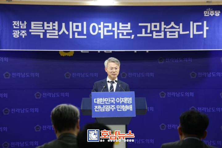 On the 15th, Min held a series of press conferences starting at the Gwangju Metropolitan Council briefing room, followed by the Jeonnam Provincial Council in Muan and the Suncheon City Hall meeting room, where he presented the detailed vision and operational principles of the integrated special city.