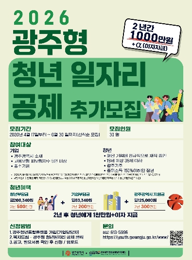 2024년부터 시행 중인 이 사업에는 현재 151개 중소기업과 청년 재직자 302명이 참여하고 있다. 광주시는 올해 신규 모집 인원 51명에 이번 추가 모집 30명을 더해 총 383명을 지원할 계획이다.