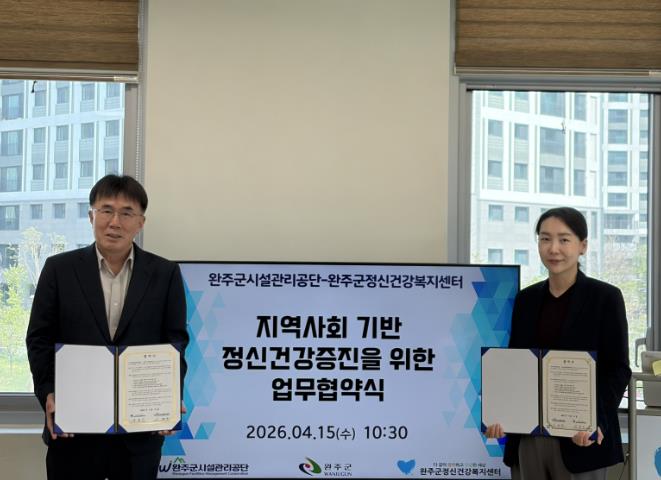 이번 협약은 완주군민 및 공단 직원의 정신건강 증진과 자살 예방을 위한 업무 협력체계를 구축하고, 지역사회 안전보건망을 강화하기 위해 마련됐다.
