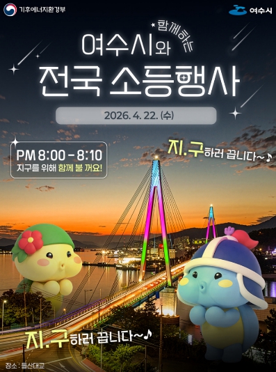특히, 여수의 대표 교량인 돌산대교와 선소대교를 비롯한 주요 공공시설물도 소등에 동참해 지구의 날 의미를 더할 예정이다.