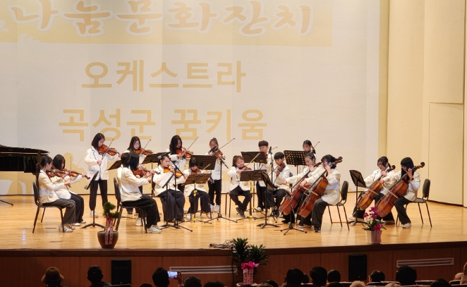 ![]() 곡성군 꿈키움오케스트라 단원들이 곡성군민을 위한 나눔문화축제에서 공연을 펼치고 있다. |