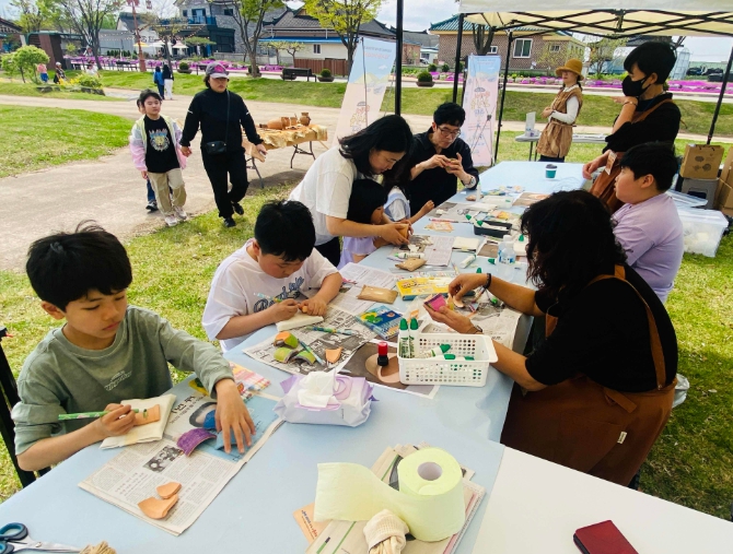 ‘뚝딱이 고인돌 공방’은 선사시대 문화를 직접 체험할 수 있는 프로그램으로, ▲토기 만들기 ▲고인돌 석고 방향제 만들기 ▲목궁·아틀라틀 체험 ▲갈돌·갈판 체험 ▲선사시대 악기 체험 ▲선사시대 그림그리기 등 총 6종의 체험활동으로 구성되어 참가자들의 큰 호응을 얻었다.
