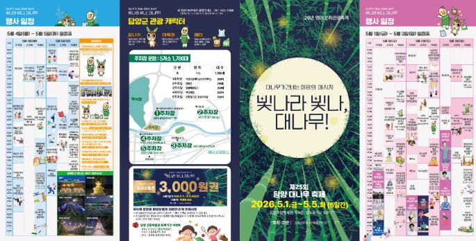 이정국 담양군수 권한대행은 “올해 축제는 낮보다 빛나는 야간경관과 다채로운 체험·공연 콘텐츠를 바탕으로, 머물며 즐기는 체류형 축제로 새롭게 도약할 것”이라며 “가족과 친구, 연인들이 담양에서 잊지 못할 추억을 만들 수 있도록 마지막까지 최선을 다해 준비하겠다”고 밝혔다.