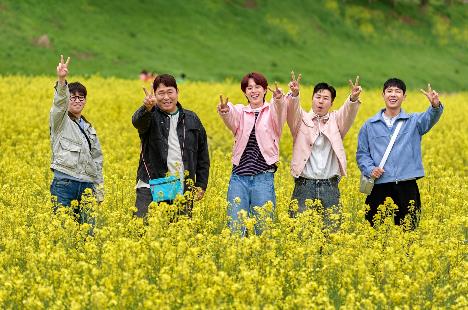 ![]() 지난 4월 10일부터 이틀간 KBS 대표 예능 프로그램 ‘1박 2일’ 촬영이 진행됐다. 사진은 출연진들이 영산강 유채꽃밭에서 기념사진을 찍고 있는 모습. |