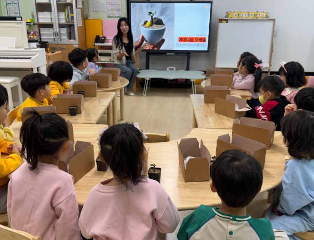 유아들은 전문강사와 함께 ▲원예활동 ▲식물 그림책 읽기 등 체험형 콘텐츠를 체험하며 자연스럽게 유대감을 형성한다.