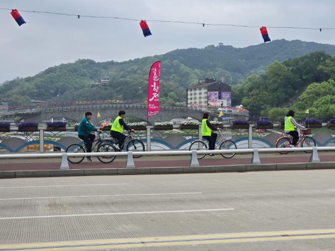 120민원봉사대는 제96회 춘향제를 찾는 관광객들에게 쾌적하고 안전한 환경을 제공하고자, 자전거를 이용해 축제장 인근과 골목 구석구석을 순찰하며 환경정비와 불편사항을 확인했다.