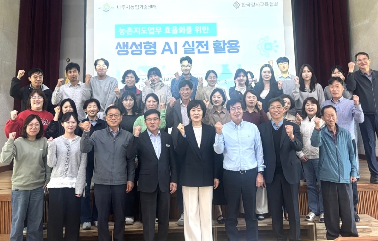 ![]() 나주시 농업기술센터는 지난 21일 농업기술센터 대강당에서 농촌진흥 공무원의 디지털 역량 강화를 위해 ‘생성형 AI 역량 강화 교육’을 실시했다. |
