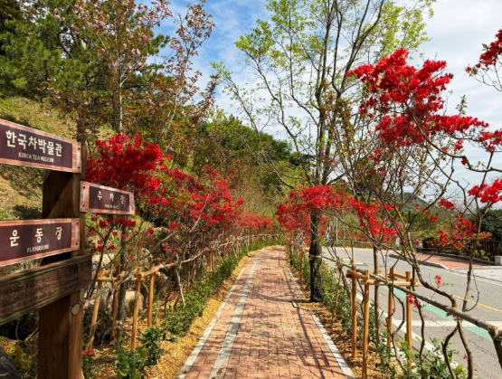 한국차문화공원 일원에는 ‘복합경관숲’이 조성된다. 품평관과 북루 사이 계곡 구간에는 목교 2개소를 설치하고, 팥꽃나무·공조팝나무·사계장미·황금실화백 등 다양한 수종을 식재해 경관을 강화했다.