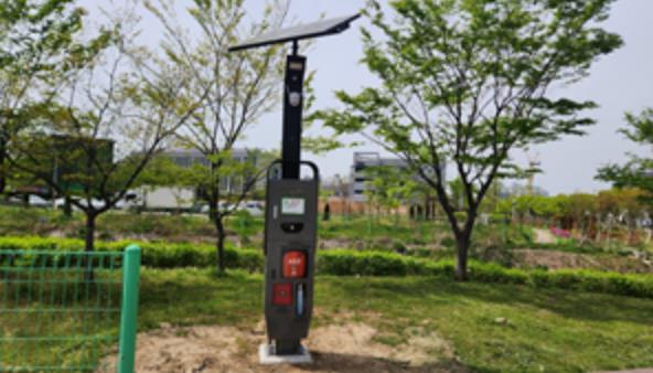 ![]() 군산철길숲1구간에설치된비상호출시스템 |