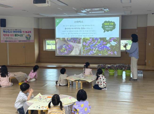 혁신도시 농촌진흥청 도담 어린이집에서 참여해 첫 회차 활동 ‘행복을 담은 화예 전문가(플로리스트)’를 아이들의 큰 호응 속에 성공적으로 마무리했다.