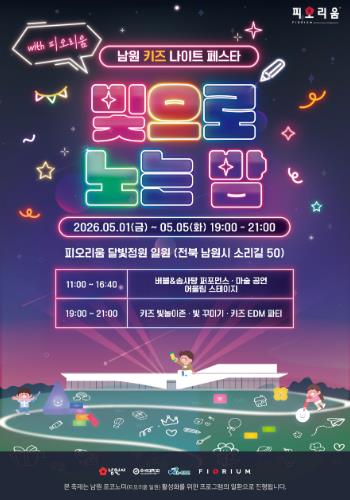![]() 남원 피오리움, 어린이날 주간 키즈 나이트 페스타 '빛으로 노는 밤' 개최 |