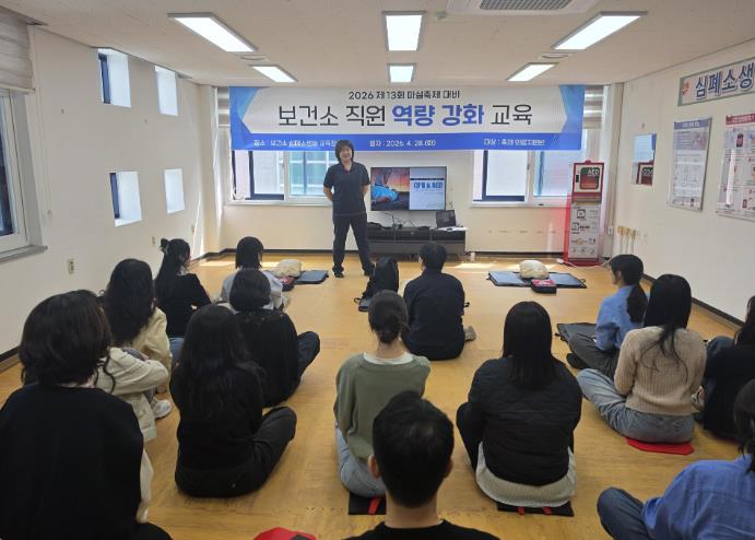이번 교육은 축제 현장에서 신속하고 정확한 응급처치를 수행하기 위한 실무 중심 프로그램으로 마련됐으며 보건소 의료지원 참여 직원을 대상으로 진행됐다.