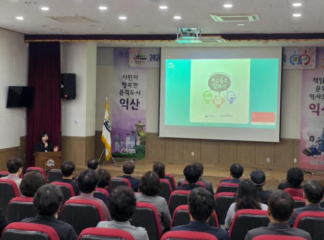 교육은 익산시정신건강복지센터 전문강사가 진행했으며, 현장에서 즉시 활용할 수 있는 실무 중심 내용으로 구성됐다.