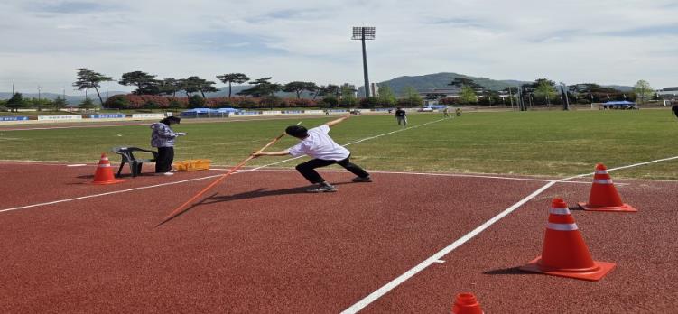 ![]() 제34회 전라남도 장애인체육대회 육상 경기에 임하고 있는 강진군 선수단 모습. |