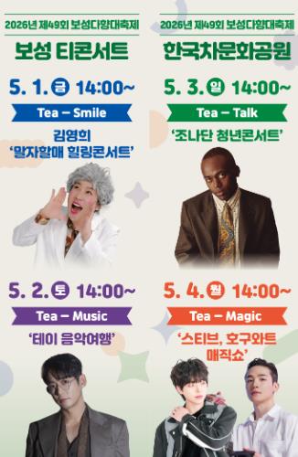 ![]() 보성군, 제49회 보성다향대축제 신규 콘텐츠 확대_‘보성 Tea-Concert’ 라인업 |