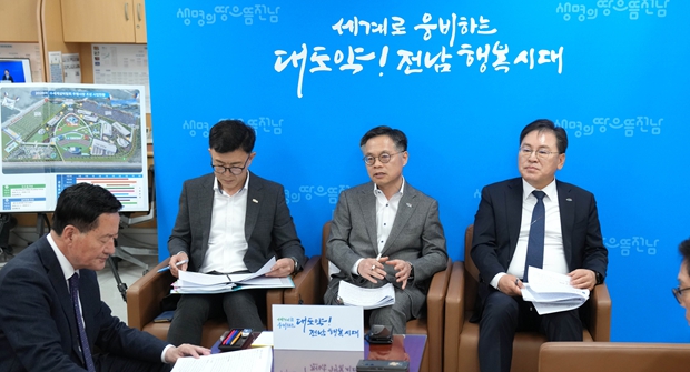 ![]() 전라남도(좌측 박영채 해양수산국장)와 여수시(우측 정현구 여수시 부시장), (재)2026여수세계섬박람회 조직위원회(가운데 김종기 사무총장)는 29일 오전 11시 전남도청 브리핑룸에서 2026여수세계섬박람회의 추진 상황을 설명했다. |