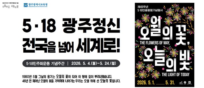 광주시교육청은 제46주년 5·18민주화운동을 맞아 오는 4일부터 24일까지 ‘5·18민주화운동 기념주간’을 운영한다.