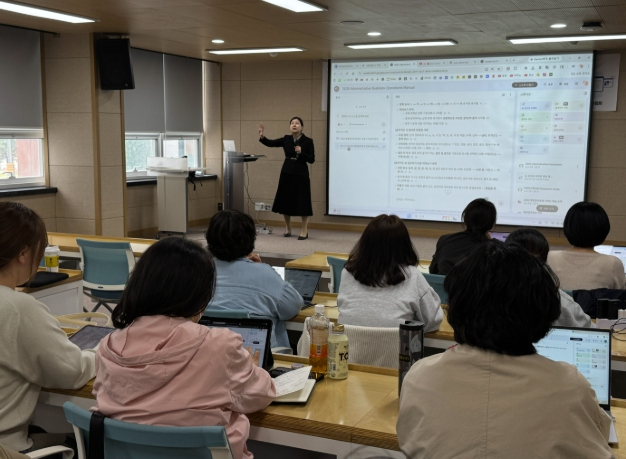 교육은 AI 전문 강사를 초빙해 ▲생성형 AI의 최신 동향 ▲주요 AI 도구(ChatGPT 등) 기능 및 특성 이해 ▲AI 활용 시 유의사항(윤리, 개인정보 보호 등) ▲공문서·사업계획·보고서 작성 자동화 기법 ▲AI를 활용한 발표자료(PPT) 구성 등으로 구성되며, 실습 중심 교육을 통해 참가자들이 직접 결과물을 작성하고 공유하는 과정으로 진행됐다.