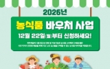 무주 박인석 기자2026. 01.16[AI 호남뉴스]무주군은 올해 ‘농식품 바우처(카드) 지원 사업’ 지원 대상을 기존 임산부, 영유아, 아동이 있는 생계급여 수급 가구에서 청년층(만 34세 이하)이 포함된 가구로 확대한다. 이번 조치는 저소득 청년들의 식료품비 부담을 경감하고 지역 농산물 소비를 촉진하기 위한 것으로, 먹거리 복지의 확대와 지역 경제 활성화에 이바지할 것으로 기대된다. 또한 지원 기간도 기존 10개월에서 12개월로 연장해 안정적인 먹거리 지원기반이 마련될 것으로 보인다. 이용권 지원금은 월 4만 원(1인 가구)부터 최대 18만 7천 원(10...