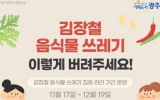 광주광역시 박인석 기자2025. 11.13[뉴스채널]광주광역시는 본격적인 김장철을 맞아 오는 11월17일부터 12월19일까지 ‘김장철 음식물쓰레기 집중 관리 기간’으로 운영, 김장용 채소류에 한해 스티커 부착 종량제봉투 배출을 한시적으로 허용한다. 광주시는 집중관리 기간 공공음식물자원화시설 처리용량을 평상시보다 20% 증량해 하루 최대 540t까지 처리하고, 반입시간을 2시간 연장해 음식물쓰레기 처리를 원활히 할 계획이다. 특히 배추겉잎 등 부피가 큰 김장용 채소류에 한해 스티커를 부착한 30ℓ이하 종량제 봉투 배출을 한시적으로 허용한다. 스티커는 행정복지센터, 종량...