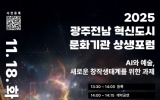 광양 박인석 기자2025. 11.13[뉴스채널]AI가 예술의 영역을 넘나드는 시대, ‘창작은 인간의 고유한 영역일까, 아니면 기술의 또 다른 언어일까.’ 이 질문에 대한 답을 찾기 위해 광주전남혁신도시에 문화기관과 예술인이 한자리에 모인다. 광주문화재단(직무대행 전은옥)과 한국문화예술위원회(위원장 정병국), 전남문화재단(대표이사 김은영)은 오는 11월 18일 한국문화예술위원회 나주 본관 아르코홀에서 'AI와 예술, 새로운 창작생태계를 위한 과제'를 주제로 광주전남 혁신도시 문화기관 상생포럼을 공동 개최한다. 이번 포럼은 AI와 예술의 창작·활용·저작권 등을 중...