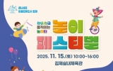 김제 박인석 기자2025. 11.11[뉴스채널]김제시는 아이들이 자유롭게 놀며 성장하는 아동친화도시 실현을 위해 오는 15일, 김제실내체육관 및 주차장 일대에서 와글와글 움직이는 놀이터,‘제2회 놀이페스티벌’행사를 개최한다고 밝혔다. 이번 행사는 아동친화도시 퍼포먼스를 시작으로, 어린이와 청소년, 부모, 조부모까지 전 세대가 함께 어울리는 즐거운 축제의 장으로 마련된다. 행사장에서는 ▲ 마술 및 버블 공연, ▲ 에어바운스 놀이터 등 다채로운 체험 프로그램이 준비돼 있으며, ▲ 대동놀이(단심줄놀이, 강강술래, 줄다리기), ▲ 김제형 딱지치기대회, ▲ 터널형 놀이...
