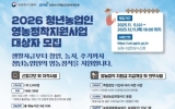 정읍 박인석 기자2025. 11.06[뉴스채널]정읍시 농업기술센터가 2026년도 청년농업인 영농정착지원사업 대상자 선발을 위해 올해 오는 12월 11일까지 온라인 신청 접수를 받는다고 7일 밝혔다. 이 사업은 영농 초기 소득이 불안정한 청년농업인이 농업 분야에 안정적으로 정착할 수 있도록 돕기 위해 마련됐다. 농업에 뜻이 있는 젊고 유능한 인재를 선발해 영농정착 지원금과 역량강화교육, 컨설팅, 정책자금 지원 등을 추진하는 것이 골자다. 신청 자격은 만 18세 이상 40세 미만의 독립 영농경력이 3년 이하이거나 영농예정자인 청년들이다. 대상자는 서면평가와 면...