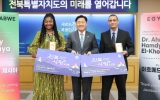 장성 박인석 기자2025. 11.04[뉴스채널]전북특별자치도가 아프리카 스포츠 부처 고위 관료들에게 도민증을 수여하며, 국제 스포츠 도시로서의 위상 강화에 나섰다. 김관영 도지사는 4일 도청 회의실에서 아프리카 짐바브웨 에밀리 제사야 국회의원 겸 스포츠․문화부 차관과 이집트 아흐메드 아즈미 사이드 청소년․스포츠부 차관에게 전북사랑 도민증을 수여했다. 이번 수여는 재외동포를 제외한 순수 외국인 대상으로는 첫 사례다. 두 차관은 앞으로 아프리카를 포함한 전 세계에 전북을 홍보하고 국제 스포츠 개최 최적지임을 알리는 글로벌 외교 동반자 역할을 수행하게 된다. 도는 지...