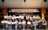 무주 박인석 기자2025. 11.03[뉴스채널]무주군 숟가락 난타 동호회 ‘현대판 어우동’팀 회원들이 지난 3일 (재)무주군교육발전장학재단에 장학금 1백만 원을 기탁했다. 정명임 회장은 “우리 지역 청소년들이 꿈을 키워나가는 데 보탬이 되고 싶다는 회원들의 마음을 모아 장학금으로 전달하게 됐다”라며 “장차 무주군을 이끌고 나갈 우리 아이들이 밝고 건강하고 자라는 데 꼭 필요한 버팀목이 됐으면 하는 바람”이라고 전했다. 숟가락 난타 동호회 현대판 어우동팀원 11명은 모두 무주읍 주민들로, 2024년부터는 ‘행복 밥차와 함께하는 재능기부’ 공연을 펼치며 이웃사랑에 ...