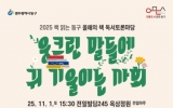 완도 박인석 기자2025. 10.30[뉴스채널]광주 동구는 11월 1일 오후 3시 30분 전일빌딩 245 전일마루에서 시민과 함께하는 ‘2025 올해의 책 독서토론마당’을 개최한다고 밝혔다. 이번 행사는 단순한 독서 행사를 넘어 가족과 학교, 독서동아리 등 다양한 독서공동체가 모여 ‘웅크린 말들에 귀 기울이는 사회’를 주제로 서로의 생각을 나누는 시간으로 꾸려진다. 이날 토론회에서는 ‘2025 올해의 책’으로 선정된 ‘바나나가 더 일찍 오려면’(정진호), ‘꿈을 걷는 소녀’(백혜영), ‘축복을 비는 마음’(김혜진) 등을 다룬다. 사회는 문학평론가 이소(광주...