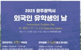 광주광역시 박인석 기자2025. 10.29[뉴스채널]광주광역시는 ‘2025 광주 외국인 유학생의 날’ 행사에 참가할 유학생을 오는 11월7일까지 모집한다. ‘광주 외국인 유학생의 날’은 외국인 유학생들이 자신의 재능을 발휘하고, 내국인 청년·시민들과 문화 교류를 통해 지역 정착을 돕는 축제의 장으로, 광주시는 지난 2023년부터 해마다 개최하고 있다. 올해 행사는 오는 11월13일 5·18민주광장에서 ‘전남대 국제교류의 날’ 행사와 함께 열리며 유학생 장기자랑, 대한외국인 N행시 백일장, 유학생활 토크 콘서트(V-talk) 등 다양한 프로그램이 마련된다. 참가자 모집...