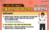 익산 박인석 기자2025. 10.27[뉴스채널]익산시가 27일 독감(인플루엔자) 유행주의보 발령에 따라 시민들에게 철저한 개인 위생 관리와 예방수칙 준수를 당부했다. 질병관리청은 지난 17일 인플루엔자 유행주의보를 발령했다. 이는 지난해(12월 20일)보다 약 두 달 빠른 발령으로, 조기 확산이 우려되고 있다. 인플루엔자는 감염 환자의 호흡기를 통해 전파되는 급성 호흡기 질환이다. 시는 이를 예방하기 위해 △기침 예절 준수 △올바른 손 씻기 △주기적 환기 △발열·기침 증상 시 의료기관 방문 등 개인 기본 수칙을 지키는 것이 중요하다고 당부했다. 이...