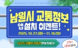 남원 박인석 기자2025. 10.27[뉴스채널]남원시는 시민들의 교통 편의를 높이기 위해 실시간 교통정보 앱을 출시하고 현재 다양한 홍보활동을 통해 적극적인 보급에 나섰다. 이번 이벤트는 남원시 교통정보 앱을 설치하고 인증한 시민을 대상으로 하며, 남원시 공식 SNS(인스타그램, 페이스북)를 통해 참여할 수 있다. 10월 27일부터 11월 16일까지 3주간 진행되며, 참여자 중 100명을 추첨해 편의점 모바일상품권을 증정한다. 당첨자는 11월 21일 남원시 SNS를 통해 발표될 예정이다. 해당 앱은 시내버스 도착예정 시간, 노선 정보, 공영주차장의 실시간 ...