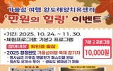 전라남도 박인석 기자2025. 10.20[뉴스채널]완도해양치유센터에서 10월 24일부터 26일까지 개최되는 ‘2025 청정 완도 가을 섬 여행’과 연계하여 ‘만원의 힐링’ 이벤트를 진행한다. ‘만원의 힐링’ 이벤트는 ‘완도왔섬, 치유됐섬’을 주제로 개최되는 ‘2025 청정 완도 가을 섬 여행’을 하는 관광객이 가을 섬 여행과 함께 부담 없이 해양치유 프로그램을 즐길 수 있도록 마련됐다. 이벤트는 ‘청정 완도 가을 섬 여행’의 프로그램인 ▲제2회 명사십리 치유길 맨발 걷기 페스티벌 ▲청산도 은하수 투어 ▲생일도 멍때리기 중 1개 프로그램에 참가(확인증 지참)하면 ...