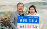완도 박인석 기자2026. 01.02[AI 호남뉴스] 영광군은 2025년 12월 30일 묘량면에 거주하는 강미나 씨가 어려운 이웃들에게 전달해달라며 마스크 3,600개를 기탁해 희망2026나눔캠페인에 동참했다고 밝혔다. 강미나 씨는 평소 지역의 어려운 이웃들을 위해 도움이 되고자 꾸준히 관심을 가져왔으며, 이번 기부는 추운 겨울 지역주민들이 건강하고 따뜻하게 지낼 수 있도록 작은 정성을 보태고자 하는 마음에서 마스크를 기탁하게 됐다. 기탁식에 참석한 강미나 씨는 “건강관리에 취약한 주변 이웃들이 건강한 겨울을 보내길 바라는 마음으로 준비했다”라며, “앞으로도 ...