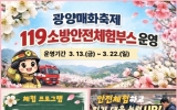 여수 박인석 기자2026. 03.12[AI 호남뉴스]전남소방본부가 오는 13일부터 22일까지 10일간 열리는 ‘제25회 광양매화축제’ 현장에서 산하 광양소방서를 주축으로 ‘119소방안전체험부스’를 운영한다고 밝혔다. 이번 체험부스는 전남의 대표적인 봄꽃 축제를 맞아 상춘객들에게 다채로운 소방안전체험 기회를 제공, 일상 속 위기 대응 능력을 향상하고 도내 전반에 안전 문화를 널리 정착시키기 위해 마련됐다. 주요 체험 프로그램은 남녀노소 누구나 쉽게 참여할 수 있도록 구성됐다. △마네킨을 활용한 심폐소생술(CPR) 교육 △빛·연기 소화기를 활용한 실감 나는 화재진압 ...